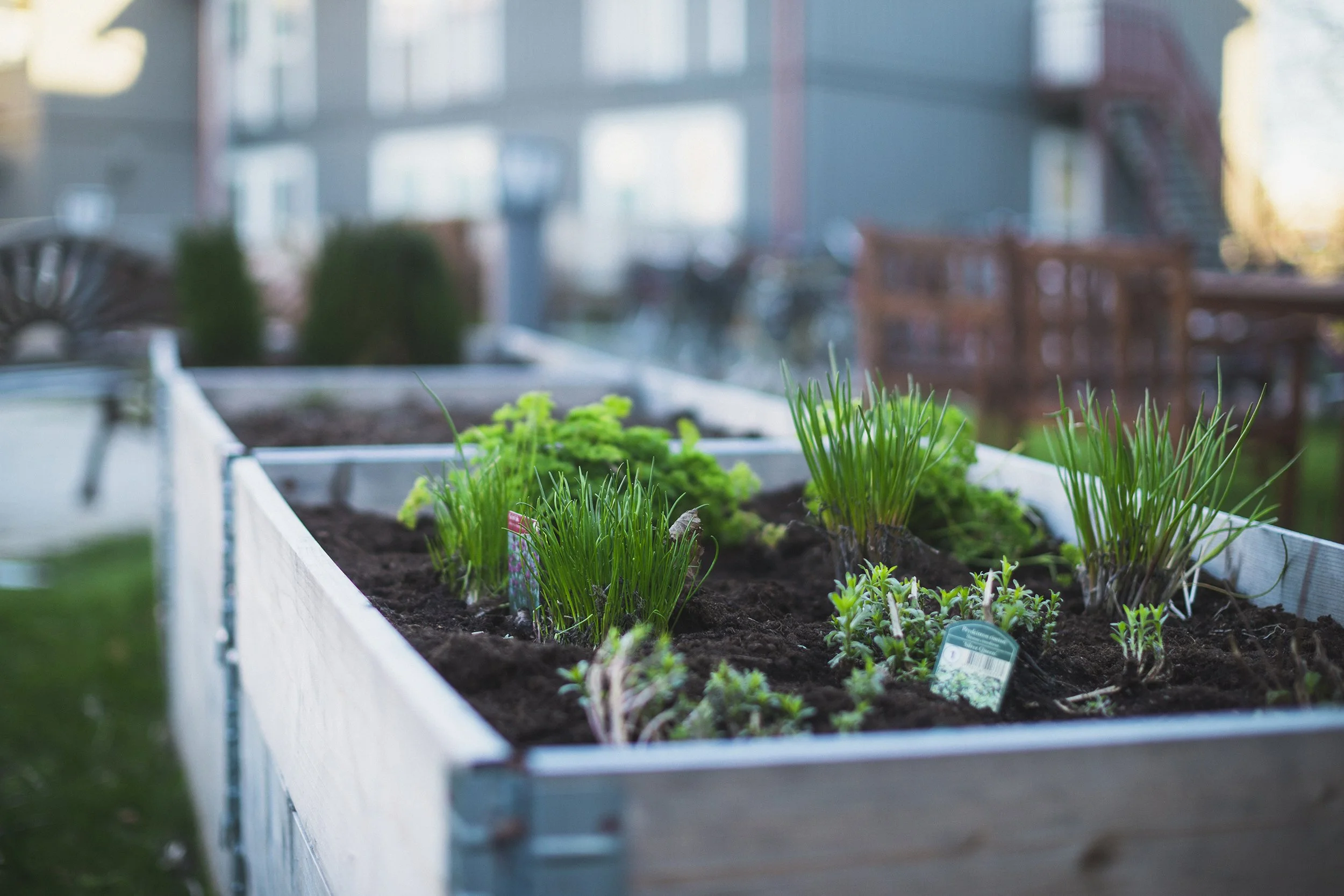 Låga hus omgärdar trädgården, vilket skapar en känsla av en liten oas med växtlighet och uteplatser. Här kan du som gäst njuta av lugnet.